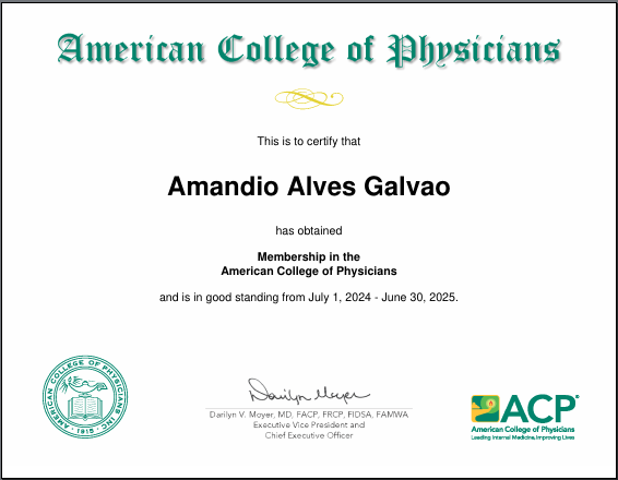 É a segunda mais antiga Ordem de Médicos dos Estados Unidos, fundada em 1895. Credenciado e inscrito com cédula 48355 nos anos 2008, 2009, 2010 e 2011.